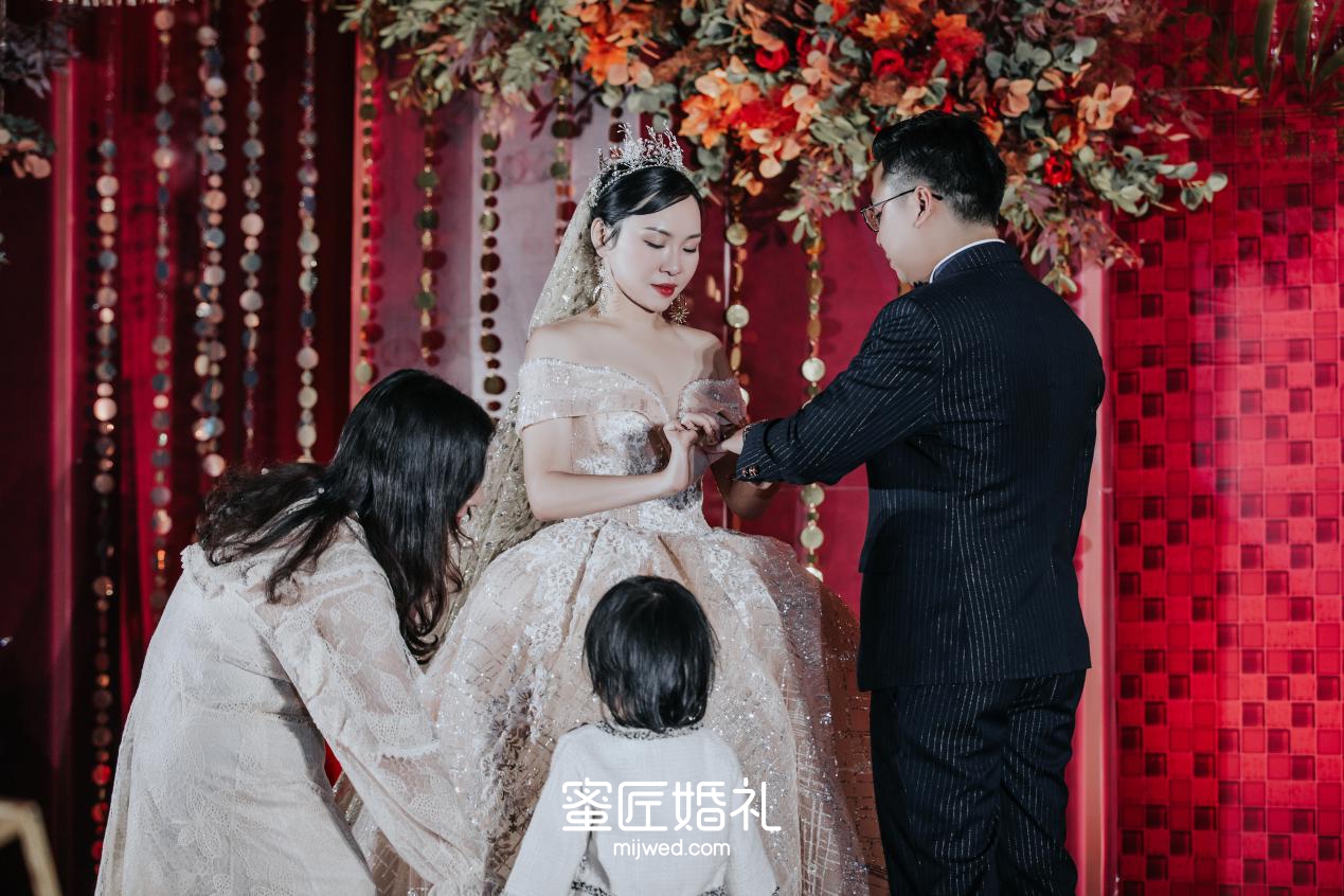 婚礼上是我们2岁的女儿给我递的戒指,上台后她就一直抱着她爸不肯撒手,那一刻我感觉自己的人生圆满了,有了厮守一生的意中人,可爱乖巧的小棉袄,我们一家三口和和美美会把生活越过越好。