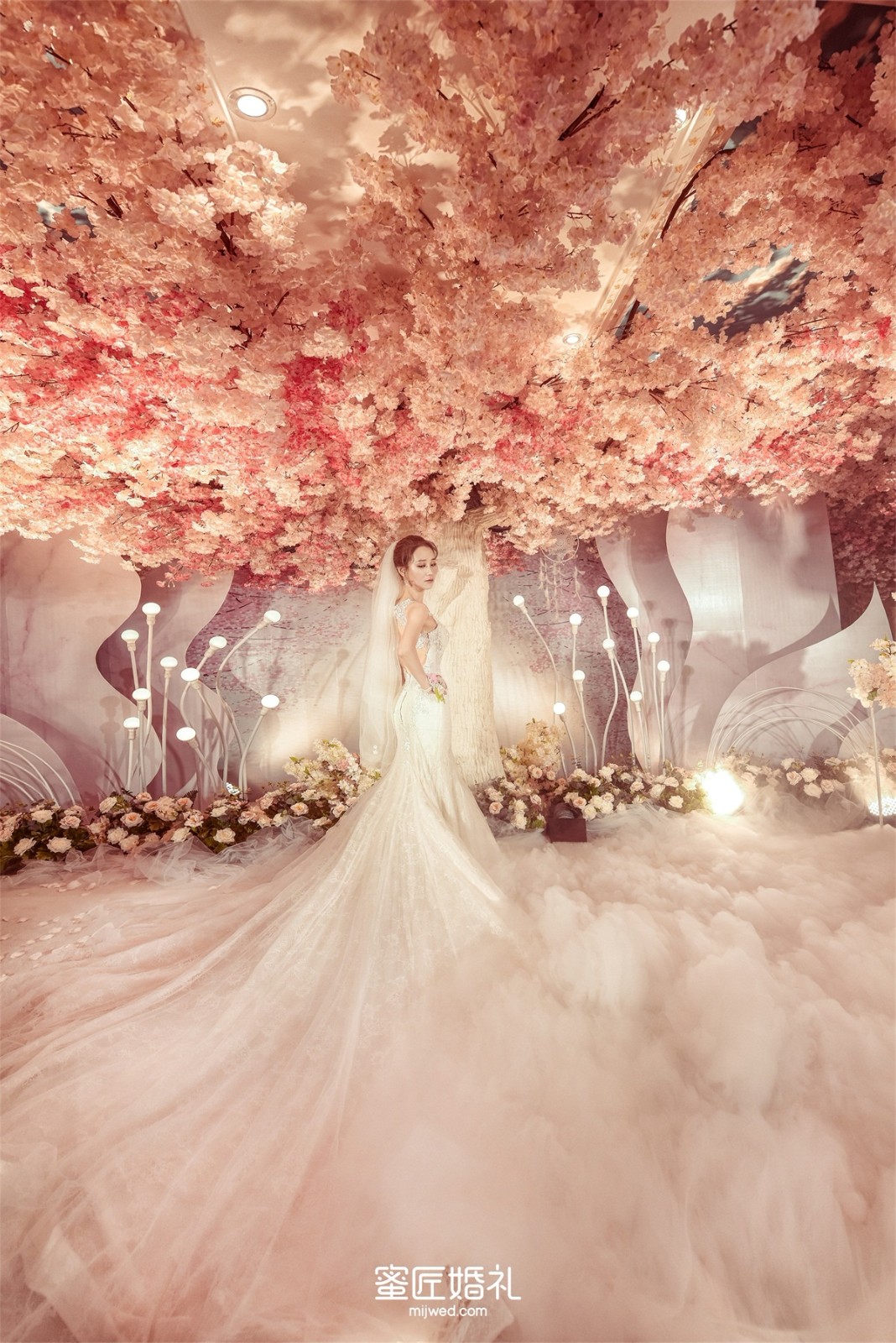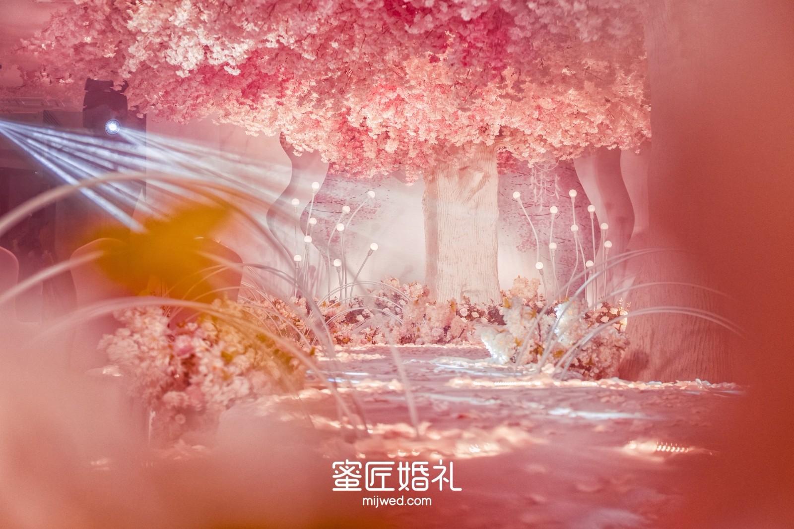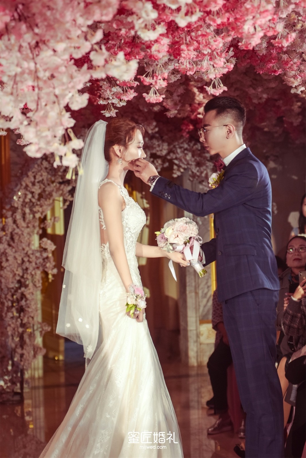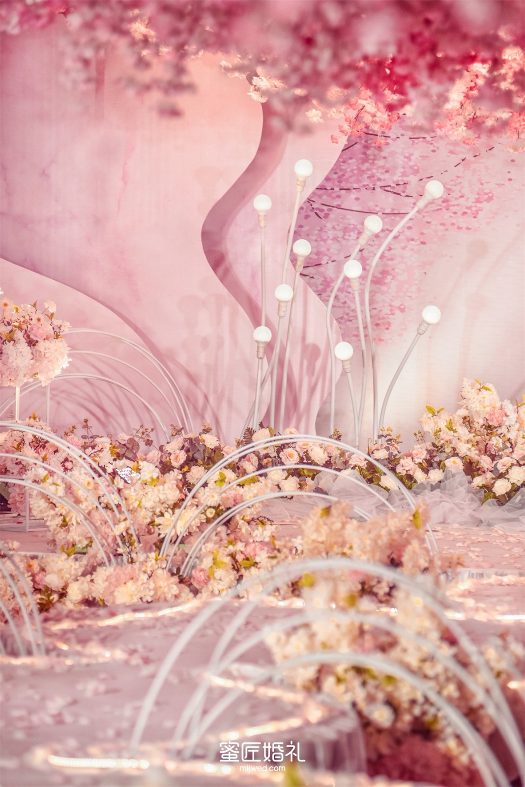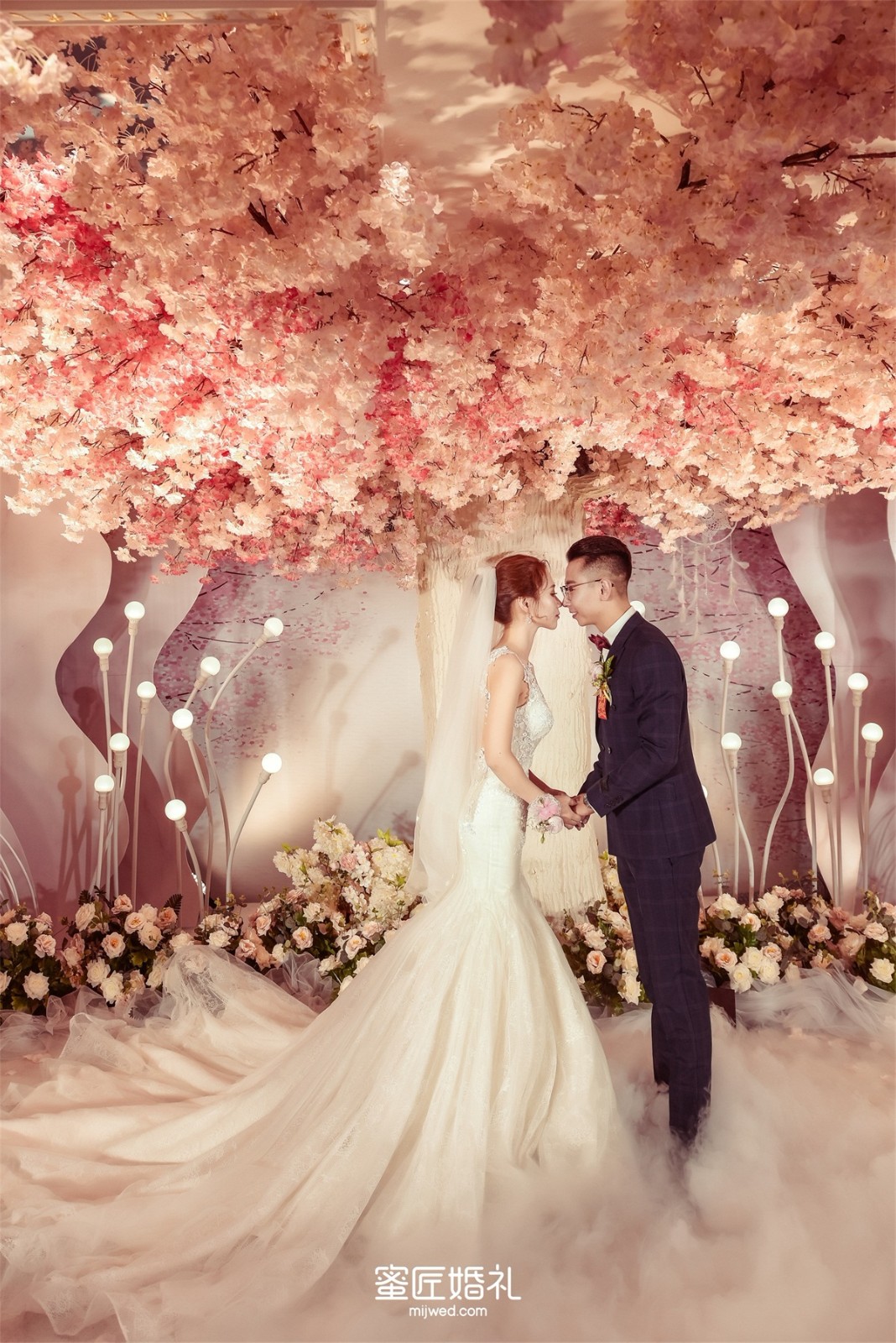 “樱花落下的速度,是每秒五厘米,而说出我爱你的声音,是无法丈量的共振”。这期新人故事里的高颜值樱花粉婚礼,唤醒多少沉睡少女心。