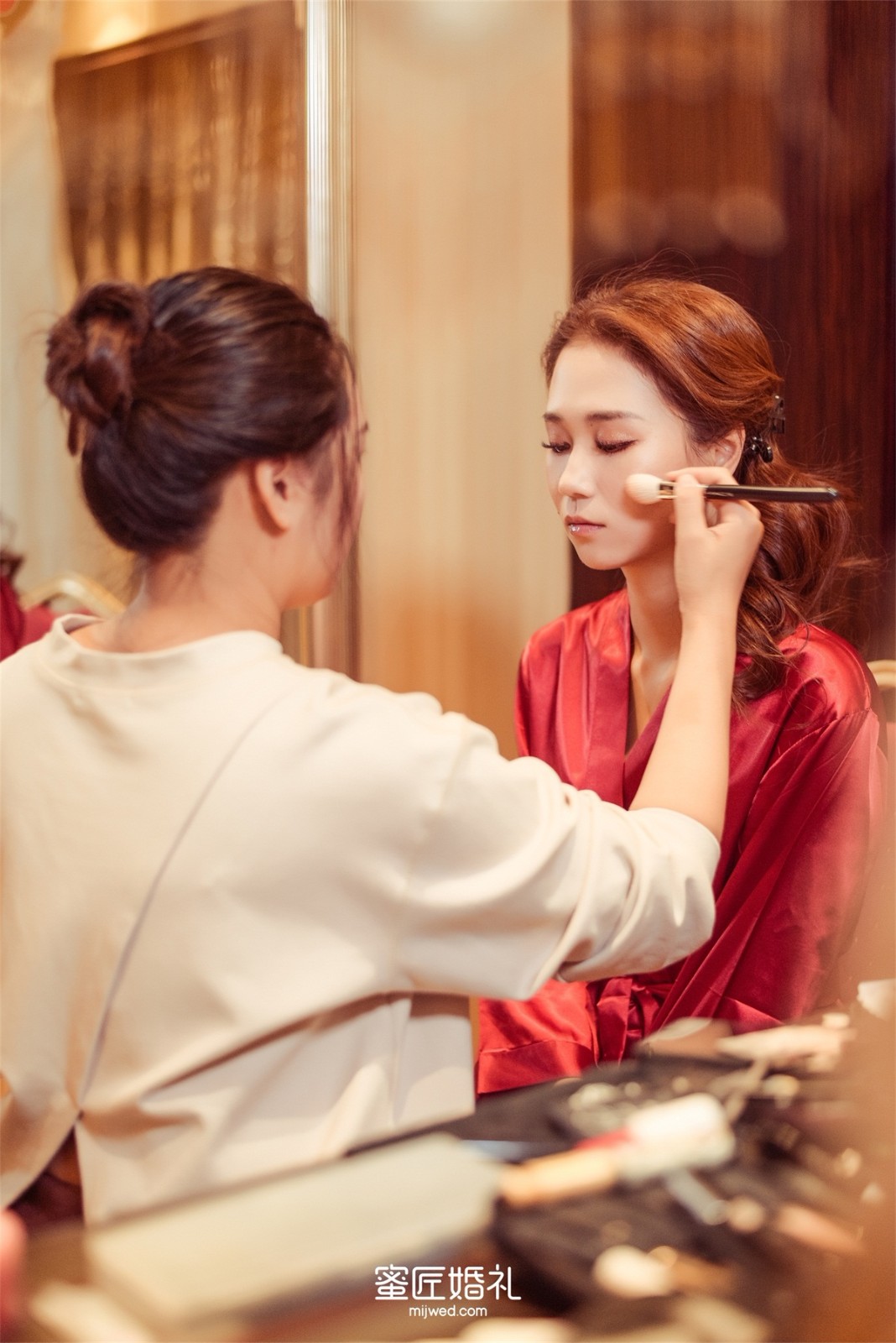化妆师是我自己选的,一定要提前试妆,看化妆师的审美是否和你一致。把你自己想要突出的部分告诉化妆师,比如我的眼睛大小不一样,我就告诉我的化妆师希望她能在眼妆上下足功夫。