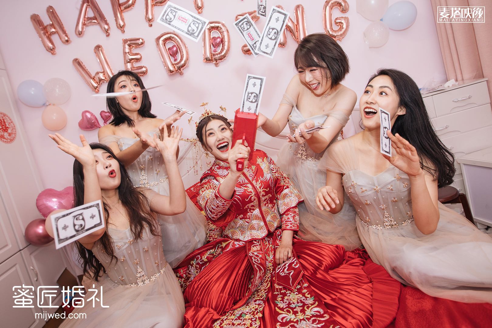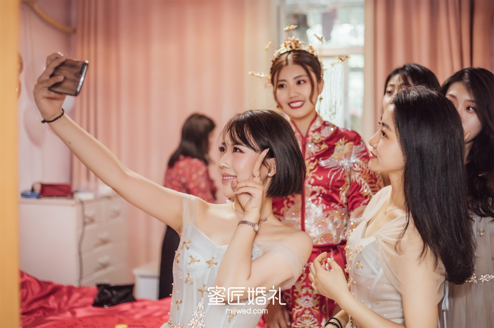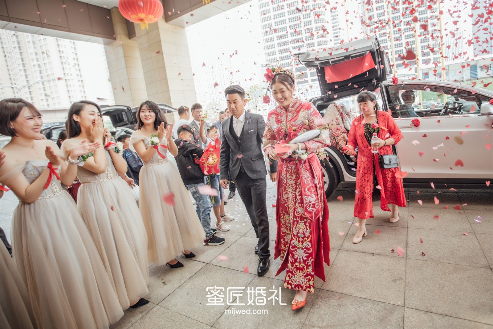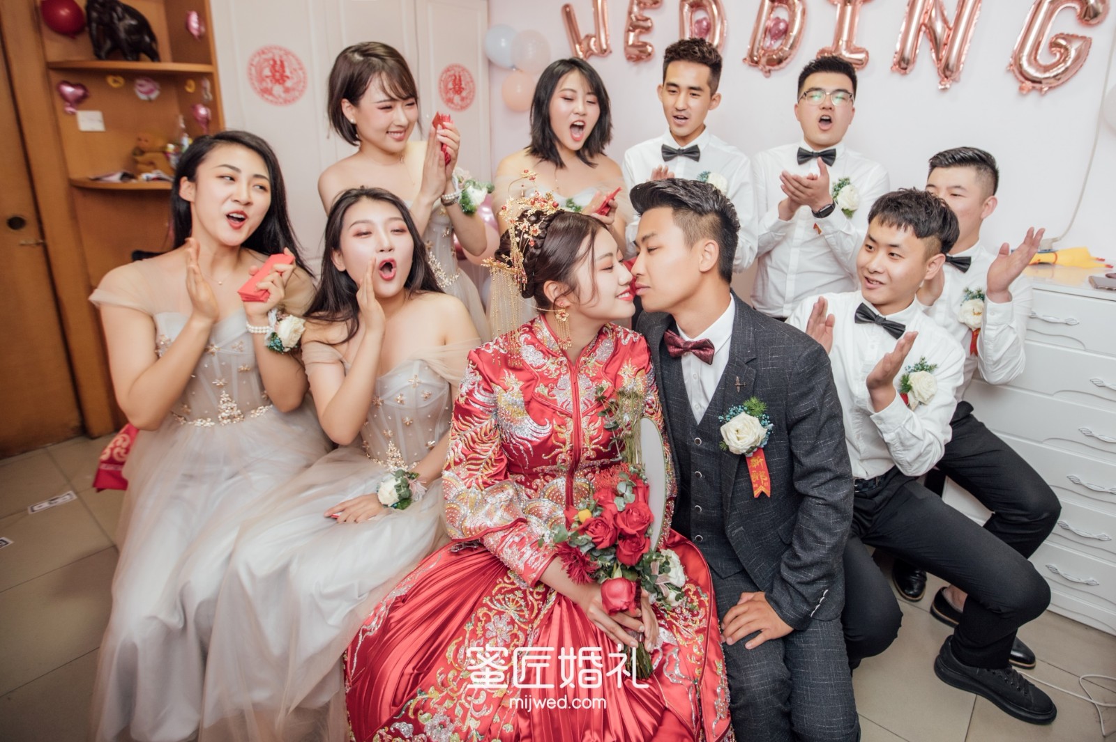 走向主台时,我的小伴娘每个人都是泪眼汪汪地看着我,我是个不能看别人哭的人,为了美虽然眼泪在眼眶里打转,但还是倔强地憋了回去。较后在敬酒的时候看到爸妈一脸不舍的样子,还是一秒破功忍不住哭了。