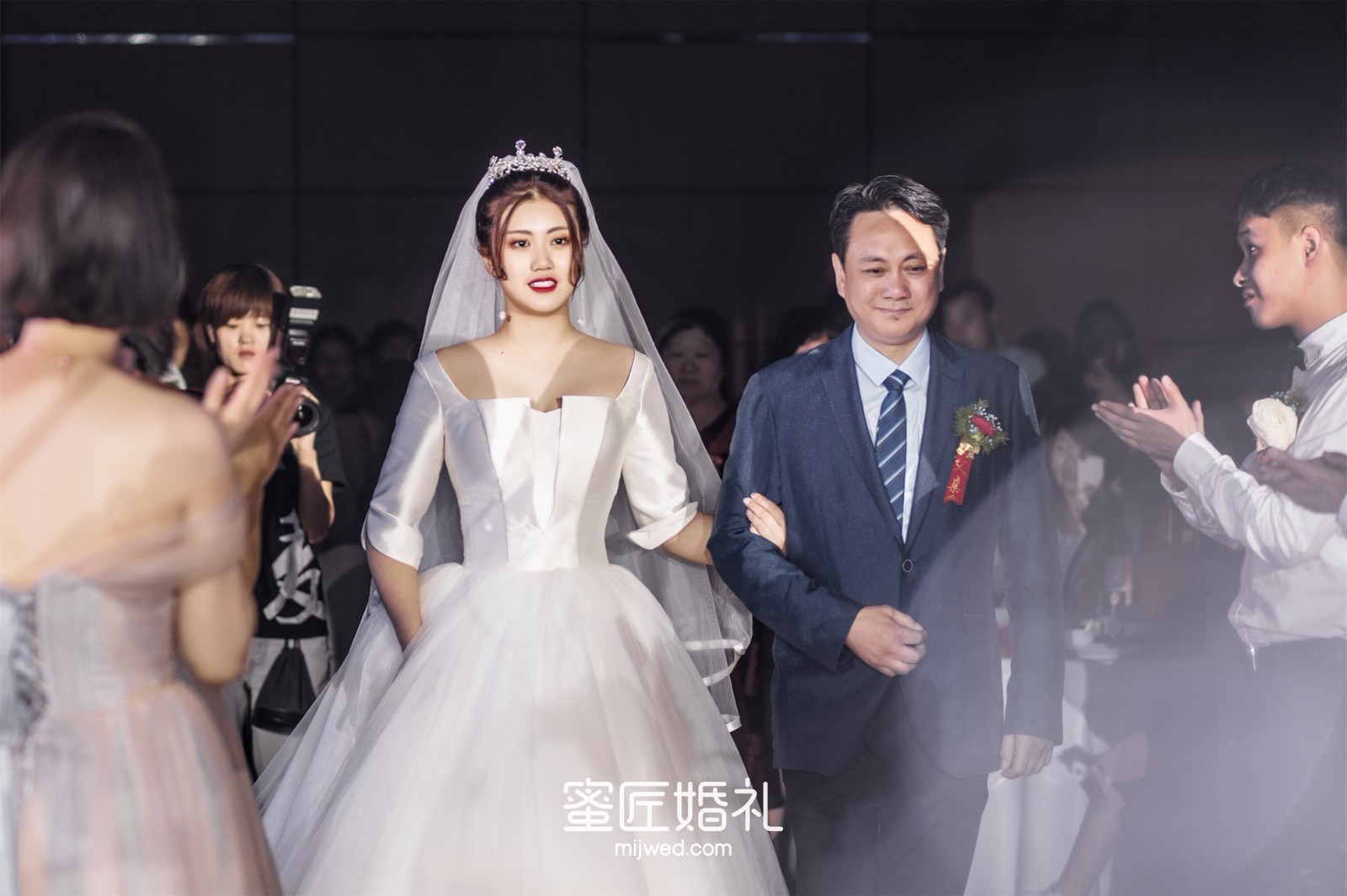 挽着我爸进场的时候,我尽量让自己保持微笑,心想不能哭花妆,这应该是所有新娘在婚礼上较后的倔强吧。