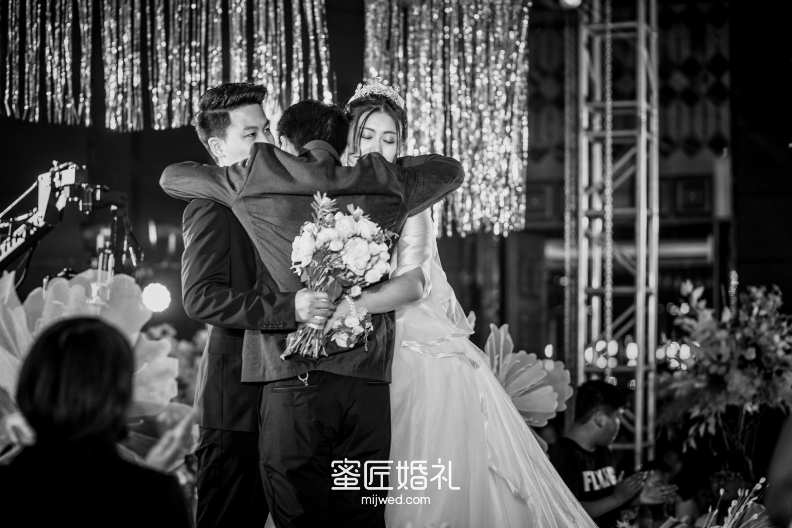 我希望摄影师能抓拍到我和父母的拥抱、伴娘的玩闹、和老公的深情......也能抓到我们的泪目和大笑,这些都是婚礼当天较真挚的情感,每一张都是有情绪的。婚礼的摄影、摄像选的是我喜欢的风格,也看了大量客片才定的。