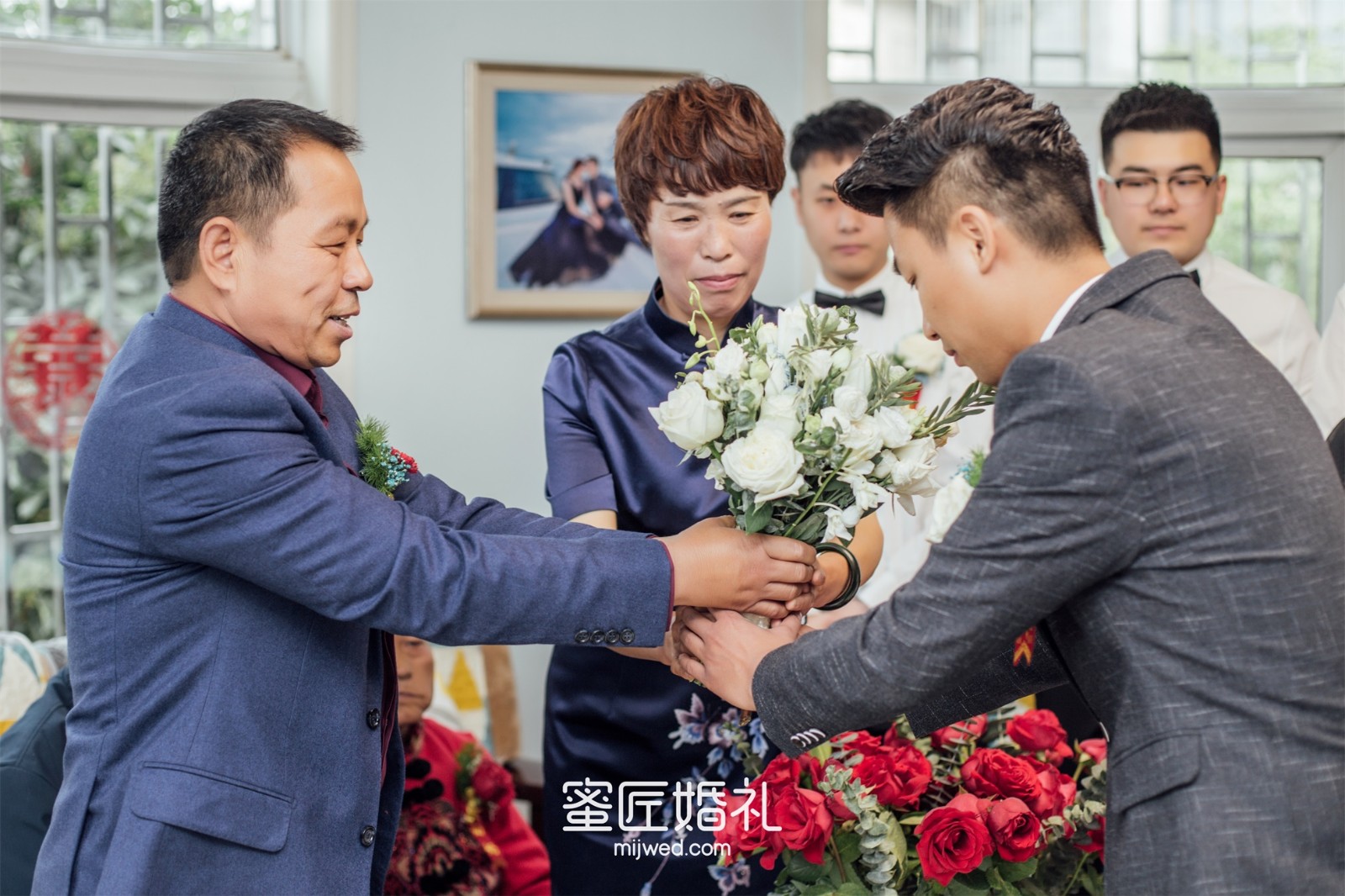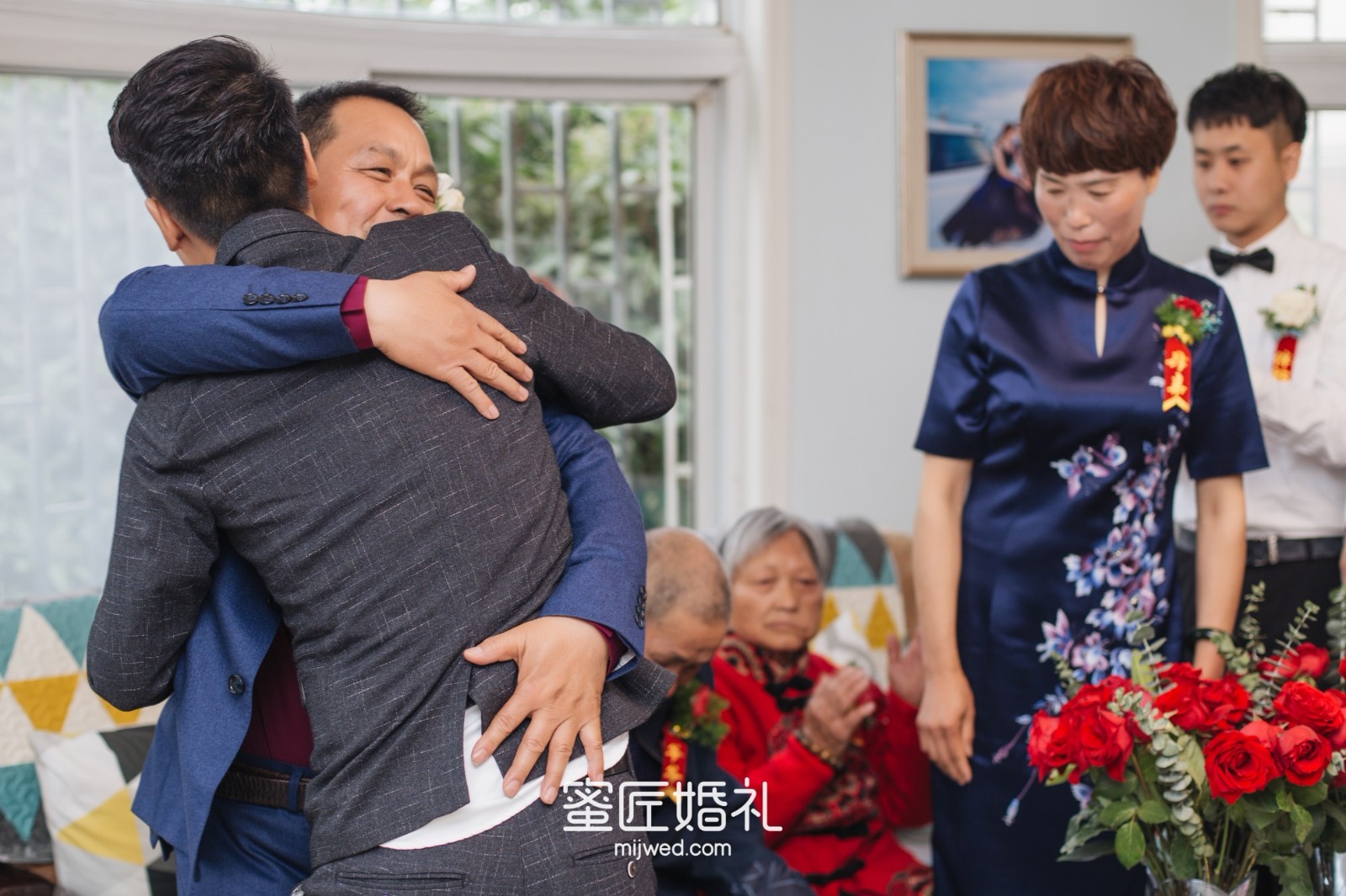 婚礼结束后我问我老公当时的感受,他说婚礼当天从他家走的时候,他妈妈的嘱托让他心里酸酸的很想哭,但候场时就挺激动乐呵的,心想终于娶到媳妇儿了哈哈哈。