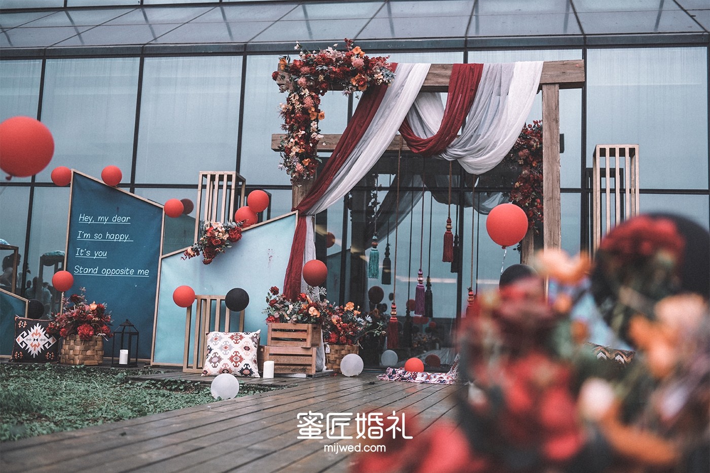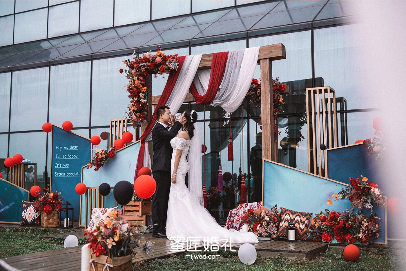 本来我想定的是蜜匠去年的爆款主题《晨曦》,有一天在朋友圈看到策划师张峥发的新款《情迷土耳其》,一眼就相中了,认为更加适合户外婚礼,结果效果确实不错。