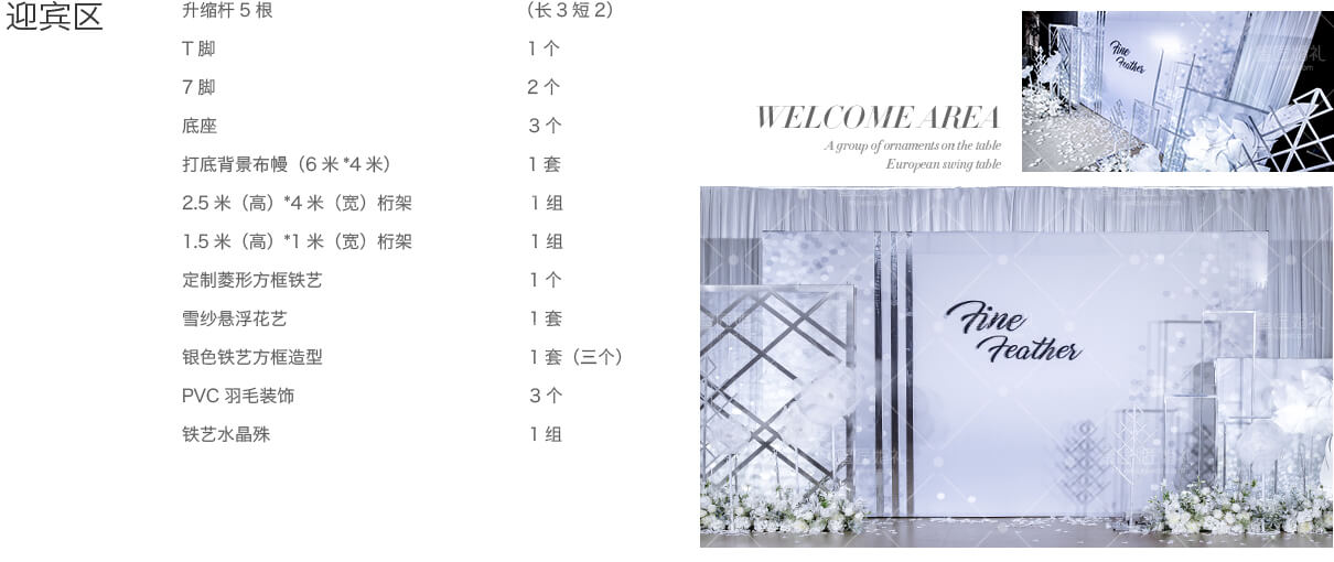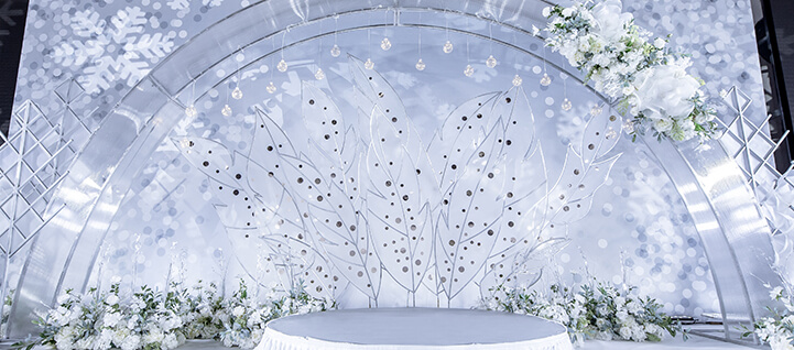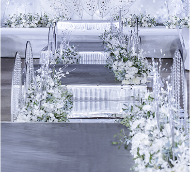惊鸿细羽结合现代材质,打造出独一无二的空灵质感。羽毛独有的美丽纹路和飘逸特质,都让婚礼充满着自然的律动和迷人的魅力。时光深处,惊鸿一瞥,纤纤细羽落心头,如素手轻抚,在日久天长中一点点镌刻成刻骨铭心。此生无他想,只愿与君共白头。