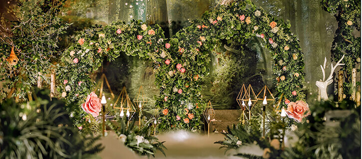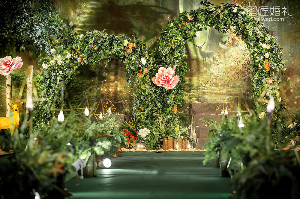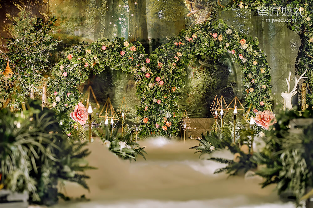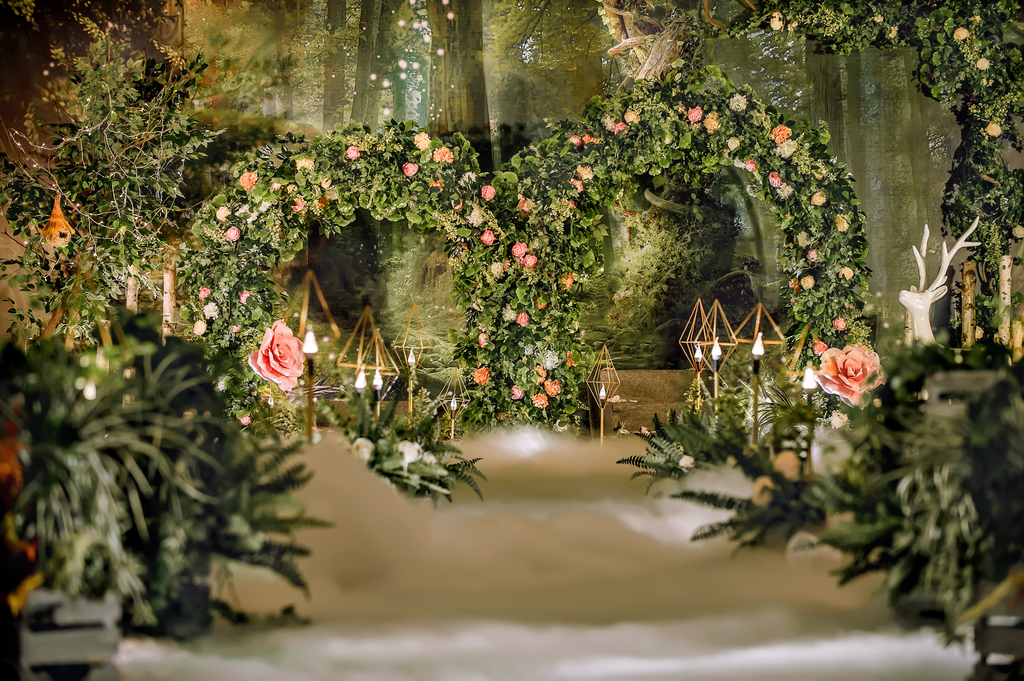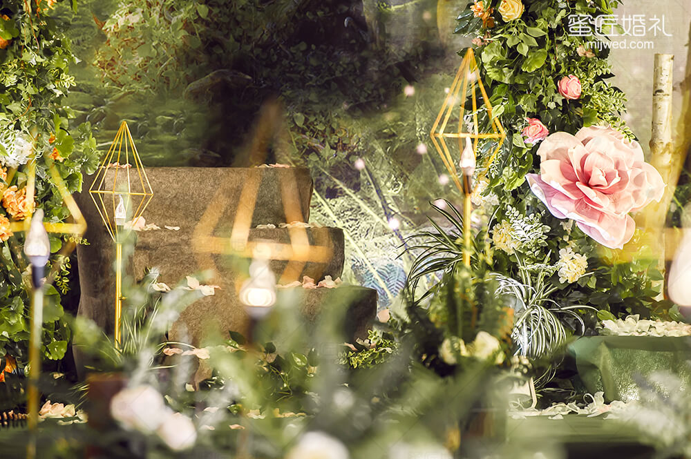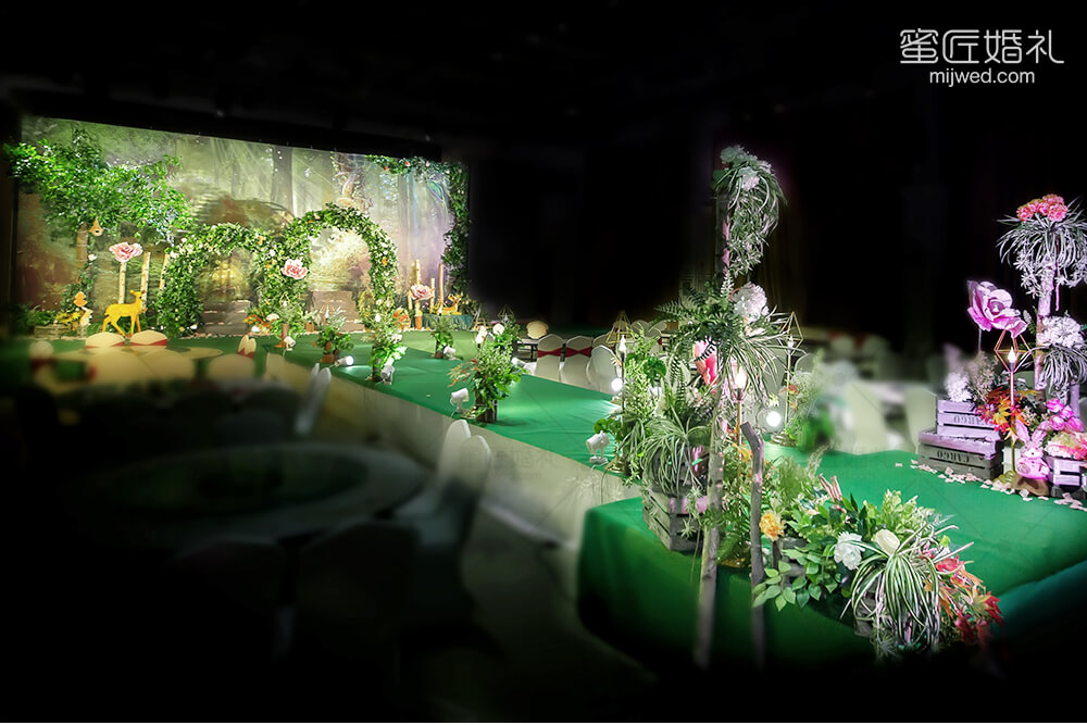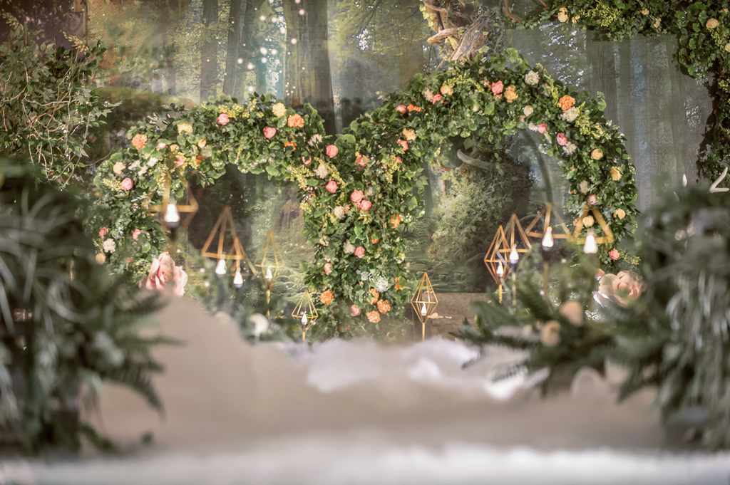 源于著名的Paronella Park(帕罗尼拉公园),也是宫 崎骏《天空之城》的灵感地。整场婚礼引入超凡脱俗的森系精灵--稀有灵鹿、阿根廷野兔,经过葱绿的仿真幽径,探秘森系婚礼。回归灵动的白桦树绿色调,晨光熹微时万籁俱寂,浓郁藤蔓花艺围绕着拱门,一杯美酒注入小筑情怀,让简单的森系元素通过萃取和糅合最终成就了这场“仙境小筑”,让不一样的仙境婚礼在现实森林殿堂绽放。