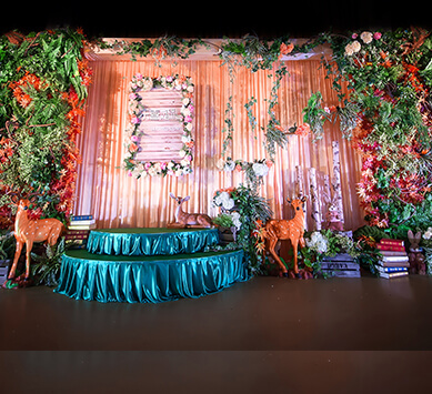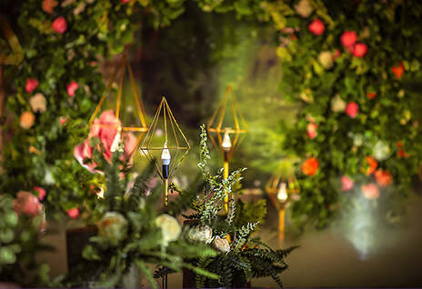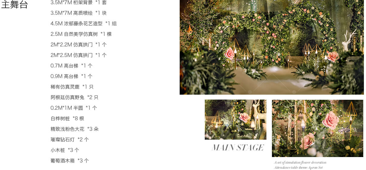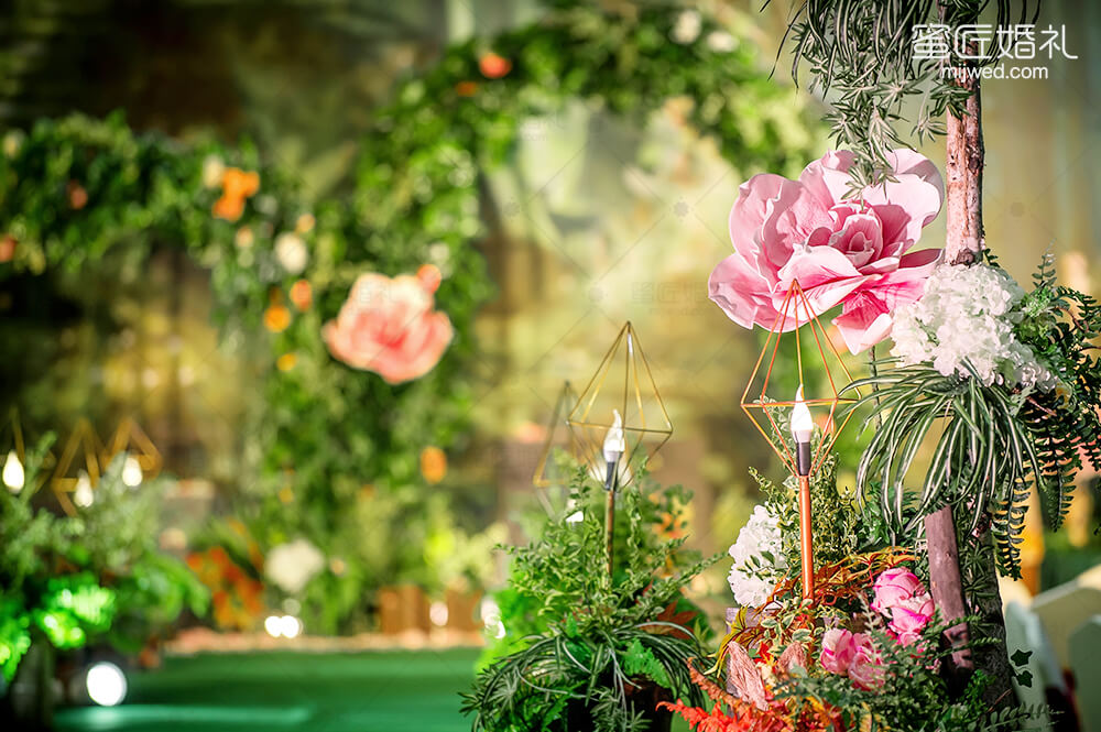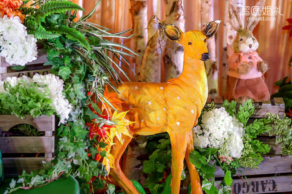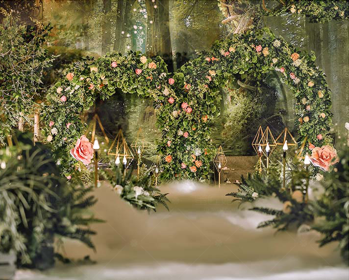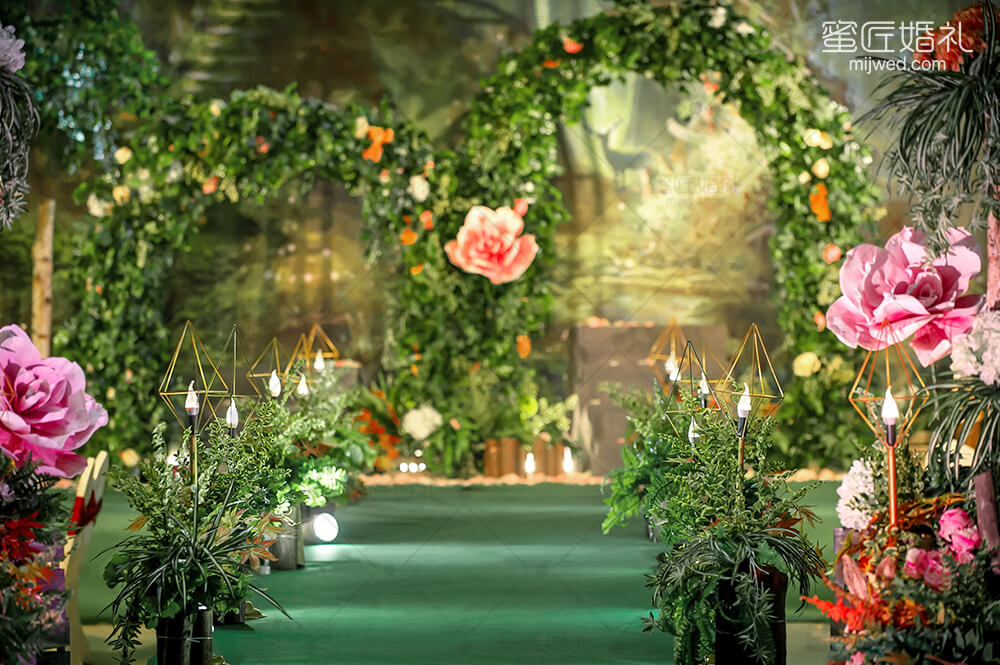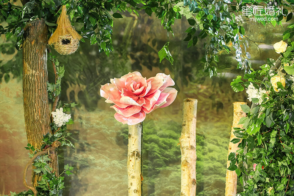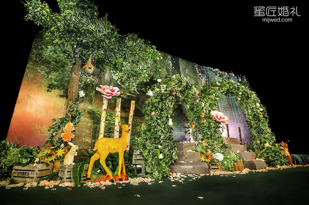 源于著名的Paronella Park(帕罗尼拉公园),也是宫 崎骏《天空之城》的灵感地。整场婚礼引入超凡脱俗的森系精灵--稀有灵鹿、阿根廷野兔,经过葱绿的仿真幽径,探秘森系婚礼。回归灵动的白桦树绿色调,晨光熹微时万籁俱寂,浓郁藤蔓花艺围绕着拱门,一杯美酒注入小筑情怀,让简单的森系元素通过萃取和糅合最终成就了这场“仙境小筑”,让不一样的仙境婚礼在现实森林殿堂绽放。