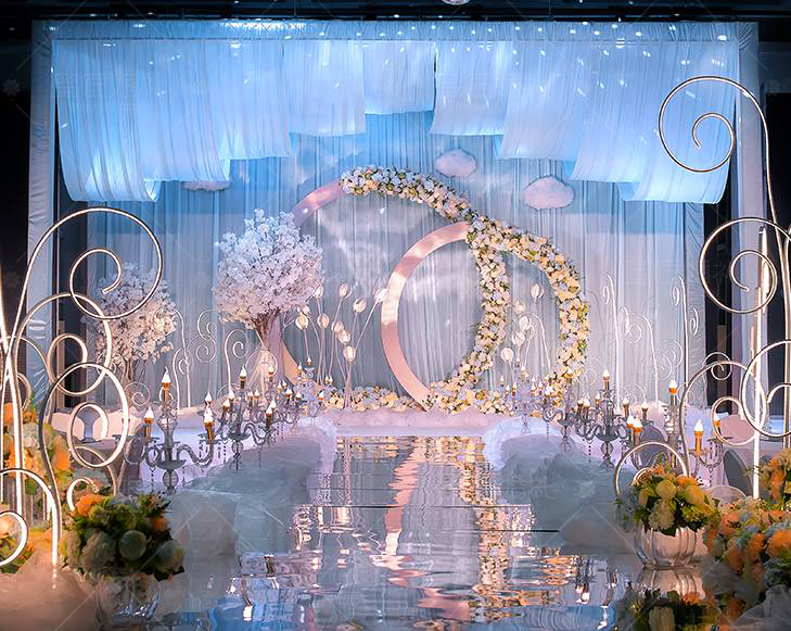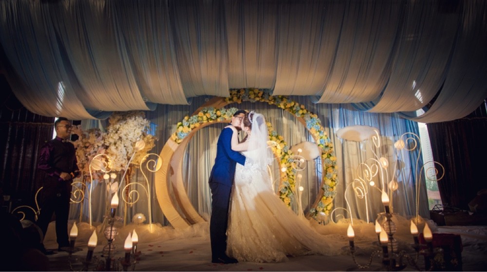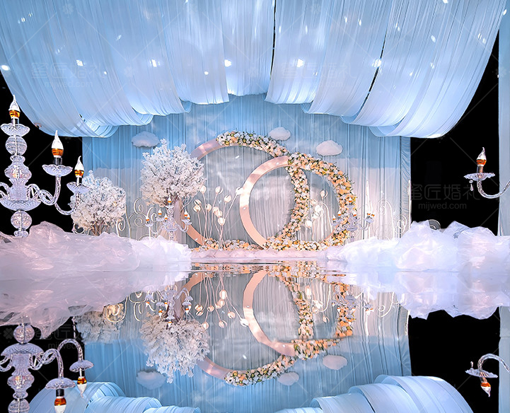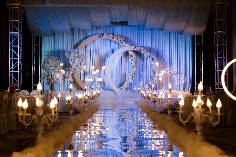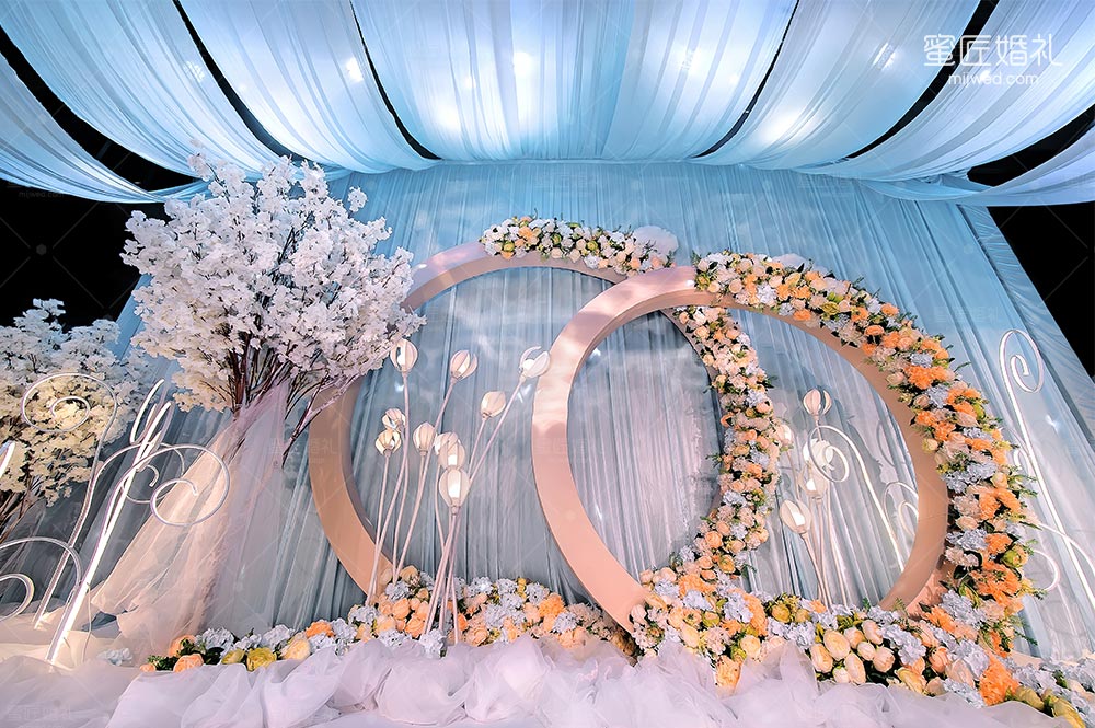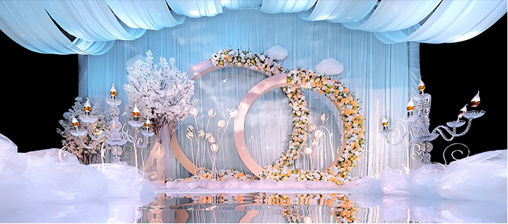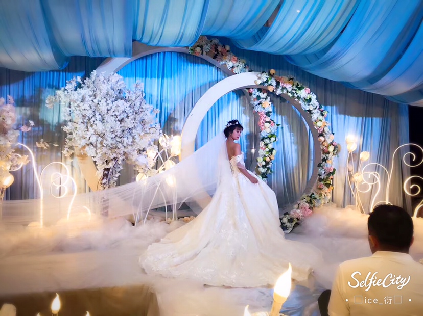 设计灵感源自“邂逅月光女神“,将灵动的“花好月圆”造型完美融入到神圣的婚礼中,谱写了一