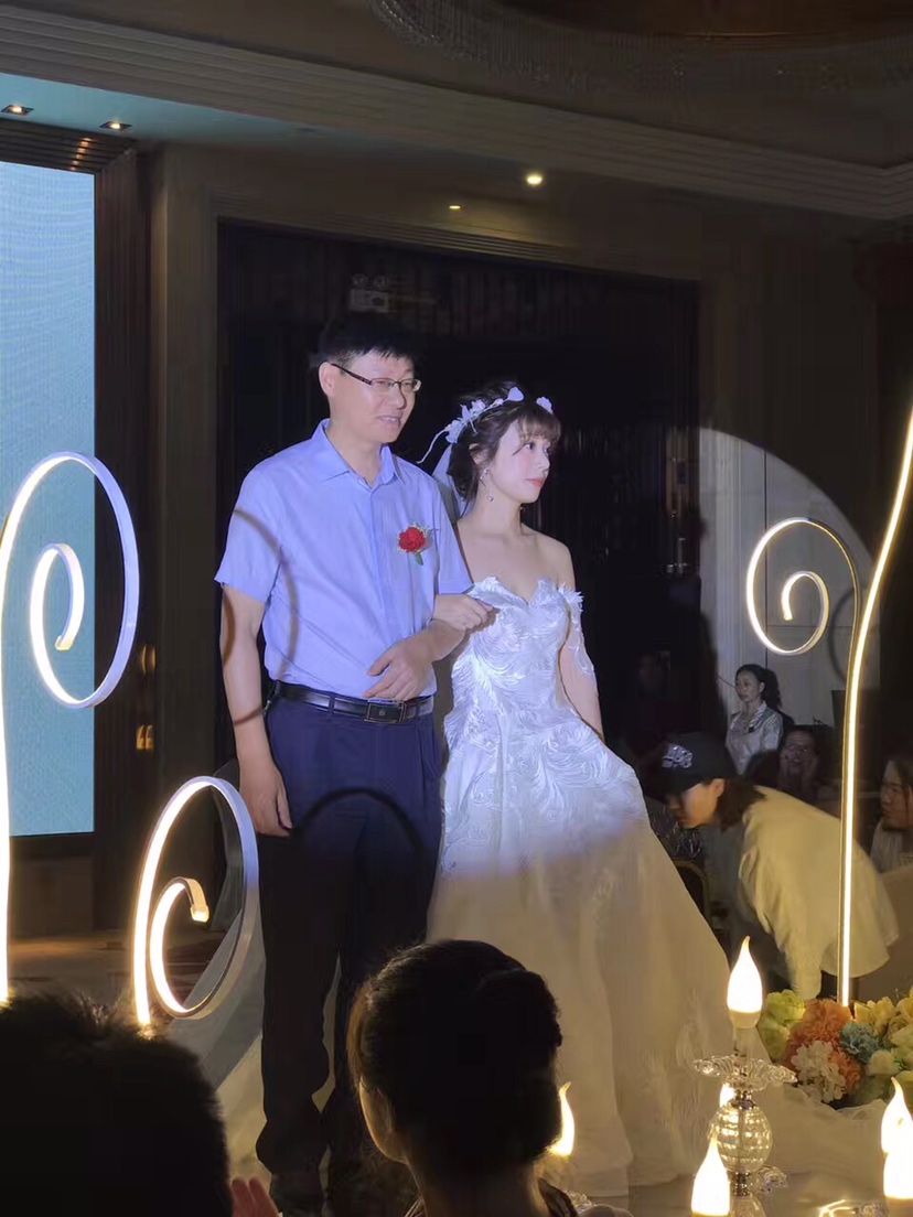 我和我老婆选的是云画的月光,一想到这个,每次最先蹦哒出来的就是超高的性价比,以及非常耐心专业的负责人晶姐,因为我们是城外,还是不劳辛苦的过来看场地给我们提供意见。 至于舞台布景,我们那天彩排的时候光T台灯出来的时候就已经足够浪漫,第二天整体效果出来,简直赞,各种器材也非常新,非常感谢乐喜,也非常感谢晶姐。