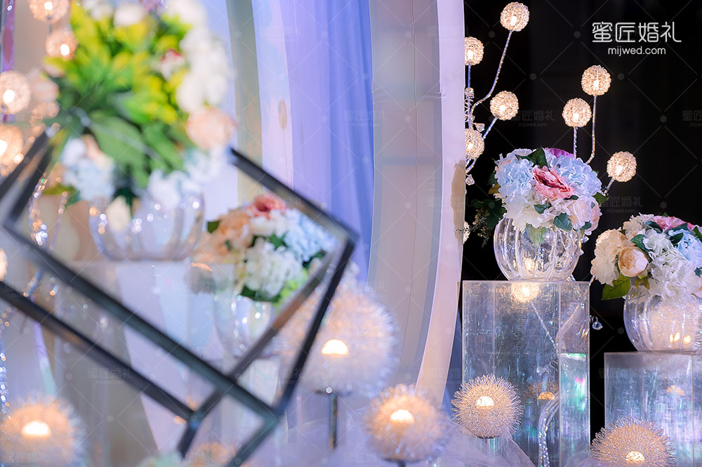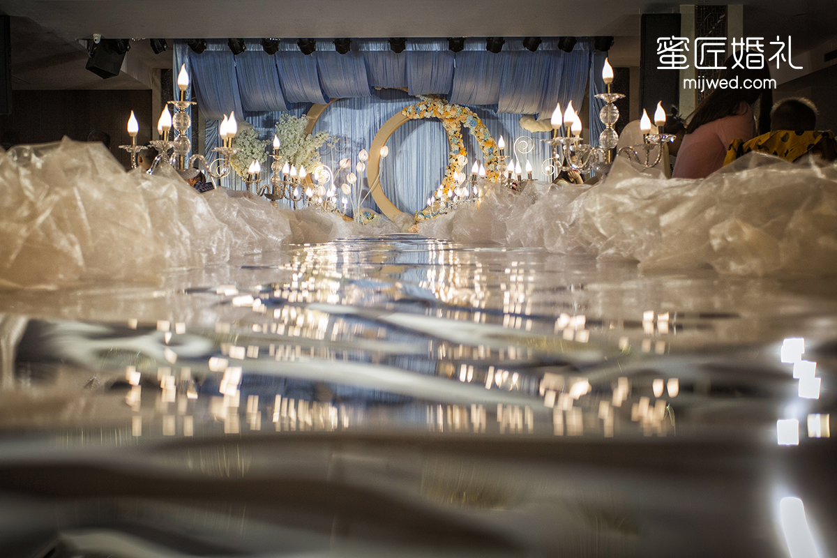 蓝色真的很梦幻!效果超乎想象的好!谢谢蜜匠的策划团队和其他工作人员那么尽心尽力地给我办好这场婚礼呀!我对婚礼,上的事情一窍不通,幸好策划师一直耐心地给建议,大家都辛苦晒啦!