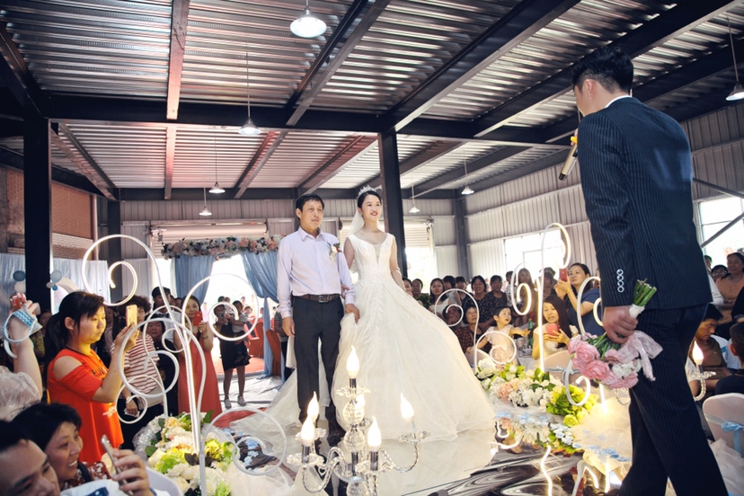 上个月刚刚完婚,虽然很辛苦,但是当天仪式过程还是值得一生回味的,虽说我们婚礼布置不是很隆重,但是很难忘。婚礼套餐挺实惠的,值得推荐,祝你们生意兴隆!
