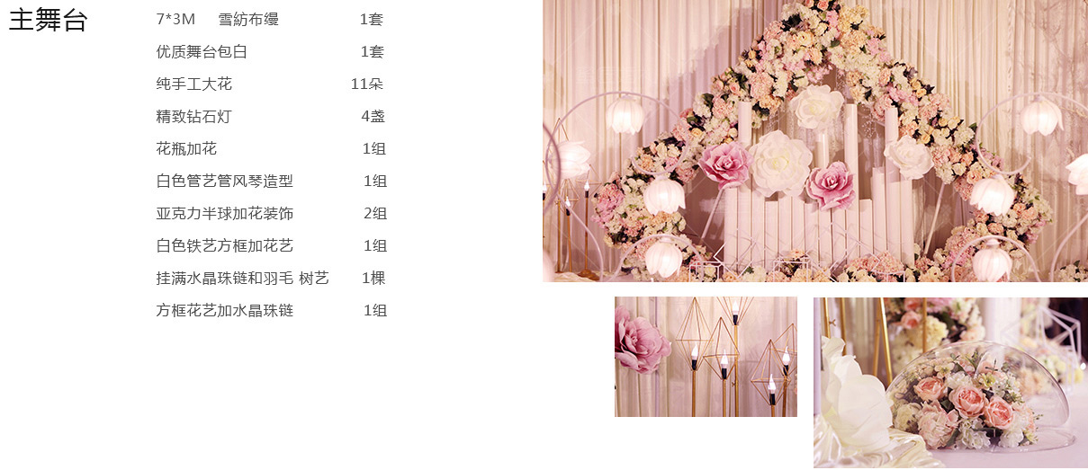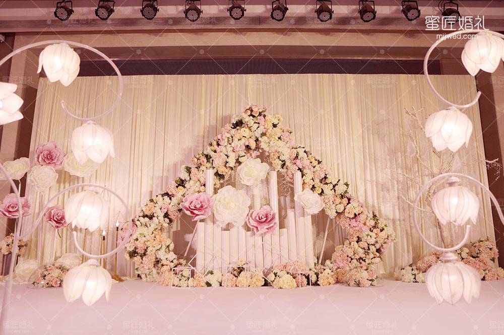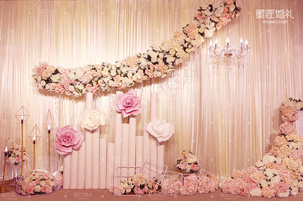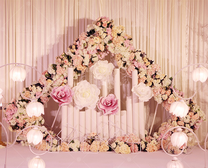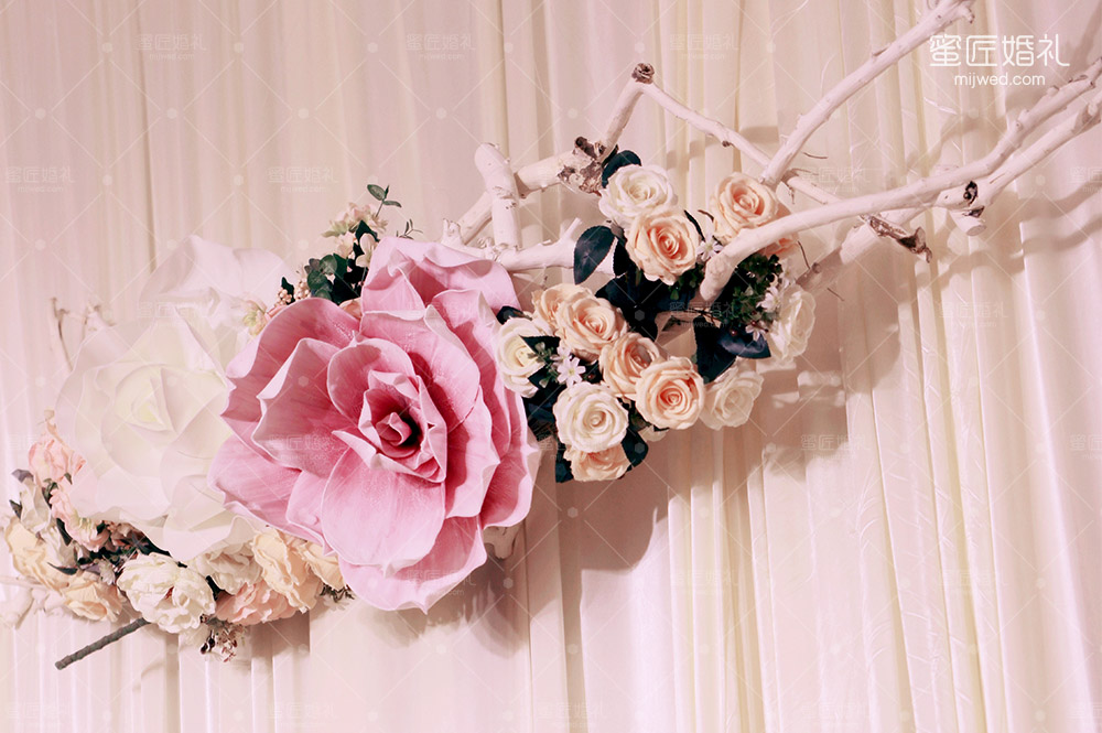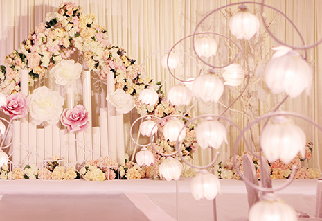 源自唐代著名诗人白居易诗云“人间四月芳菲尽”,将一抹春和一处芳菲完美倾注于婚礼仪式中。蜜匠资深 花艺师与设计师联合精心选材,秉承对用户体验的极致追求,采用馥郁香槟色为主色调,结合匠人纯手工花艺 装饰,打造一款刷新当代年轻人对小清新认知的婚礼。