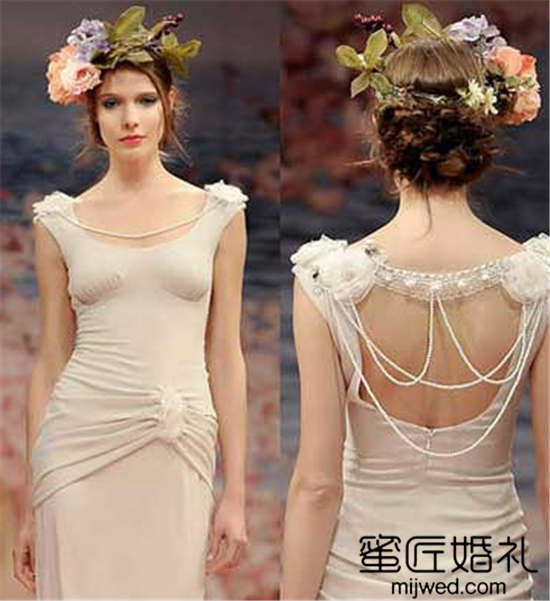 当新娘穿着露背式礼服,可以配戴长型珠串,而且在珠串的款式上还可以做花样的变化。长型珠串对于露背式婚纱可谓具有相当不错的画龙点睛的效果,珍珠那自然垂坠的效果,让新娘的背部曲线看起来更加具有美感。