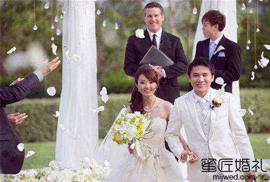 1、证婚仪式:想新郎新娘分别发问(无论未来的人生旅途中是健康、疾病、幸福、灾难、贫穷或是富有。你都要保护她、照顾她、爱惜她、尊重她,一生一世,你是否愿意)。主持人宣布一对新人正式成为夫妻,新郎拥抱并亲吻自己的妻子。