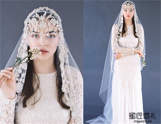 这类具有西班牙风格的面纱可以勾勒出流线型的轮廓,如同缠绕于周身的光环。