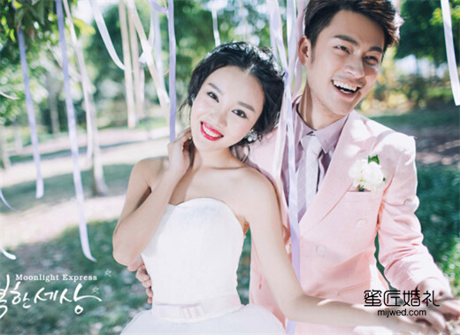 阳光直射:亮丽的阳光提供良好的照明条件,使景色有生气,色彩饱和,并为使用高速快门和小光圈提供了条件。但是强烈的阳光也会带来问题,较为突出的是它那耀眼的光线会使被摄人物睁不开眼,同时,高角度的直射阳光还会在人物脸上造成浓重的阴影,显出皮肤皱纹,损害人物的形象美。所以在户外婚纱照注意事项里面,我们需要多让阳光从侧面照射被摄者,忌脸部直接面向太阳。