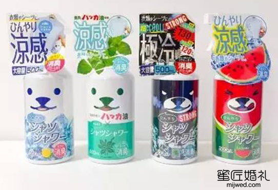 为了让大家清凉不间断,他们还出了分装瓶和替换装,大写加粗的贴心,有四种味道可选,降温的同时还能避免汗味。睡前对着床单喷一喷,躺上去像水床一样,清凉干爽,不过需要注意的是:这种降温喷雾是衣物专用,千万别贪凉对着皮肤喷。这个应该是新人们较喜欢夏季婚礼消暑神器no.1