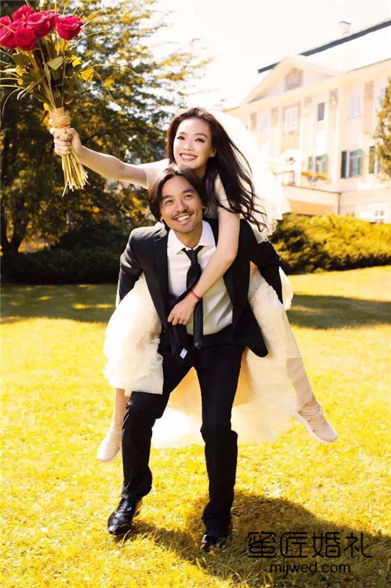 应采儿则以白纱配以蕾丝点缀的厚底帆布鞋造型嫁给陈小春。