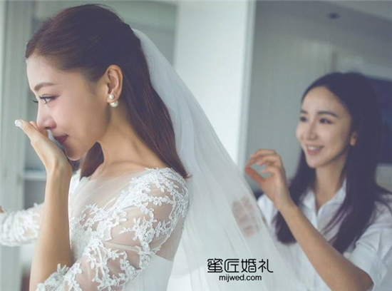 3.不要穿纯白色地礼服登场,以免喧宾夺主。伴娘礼服要比新娘装颜色稍淡,和婚礼风格同一。