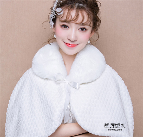 新人在挑选婚纱外套时候除了款式要应季,较重要的还是品质要好。如果冬天选择带毛的披肩但是婚礼毛毛掉一地,那就是有点小尴尬了哦。准新娘一定要做好货比三家。