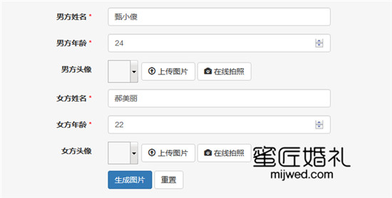 3.在上传好照片之后,接下来就可以填写结婚证的具体信息了,要把男女双方的姓名、年龄、结婚日期等都都填好。在DIY结婚证的过程中,这些信息都要填真实的。
