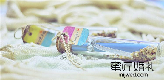 纸质的结婚请柬再有创意婚礼来宾也看得多了,不如把结婚请柬放进透明的漂流瓶中,作为“瓶中信”送到你邀请的每一位客人手中。另外还可以在每一份请柬的信封里夹上一枝薰衣草,会使整个请柬变得芳香宜人。但是漂流瓶请柬的成本比较高,各位新人可以根据自己的实际情况来考虑。