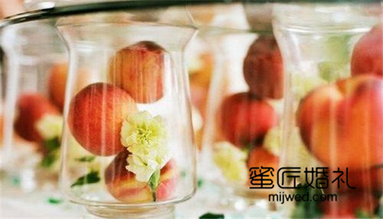 水果席位卡:在切了一半的水果底座上插上卡片就变成了独具创意的婚礼席位卡了。梨子、苹果、柠檬等都是非常合适的水果,客人入座后,水果还可以拿来食用。