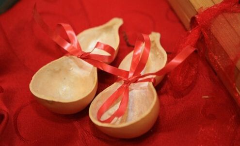 “交杯酒”:这是我国婚礼程序中的一个传统仪节,在古代婚礼用酒又称为“合卺”(卺的意思本来是一个瓠分成两个瓢),在唐代即有交杯酒这一名称,到了宋代,在礼仪上,盛行用彩丝将两只酒杯相联,并绾成同心结之类的彩结,夫妻互饮一盏,或夫妻传饮。