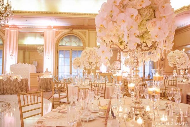 新人要通过与宴会销售人员的交流了解会场的形状、面积和功能,从而安排仪式进行区(舞台)的方位以及主桌和其他餐桌的摆放方式,进而设计婚礼仪式的主题。虽然会场都会推荐具有会场特色的布置,但新人们更喜爱具有独特风格的会场布置方案。