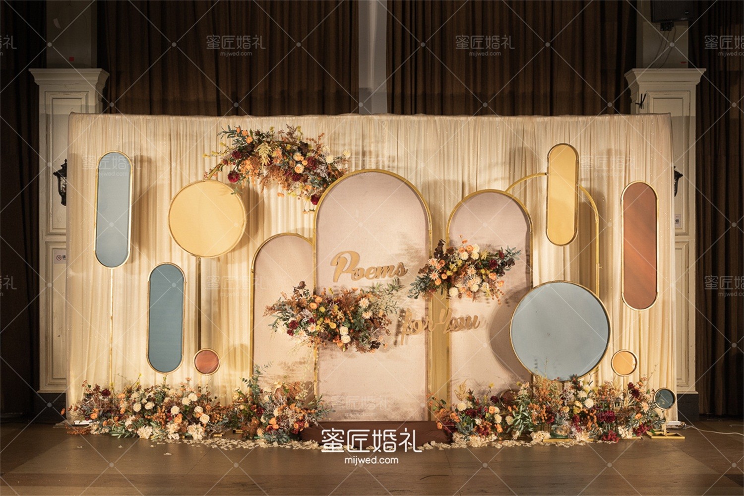 今天我来给大家介绍蜜匠婚礼这款(给你的诗)这款主题,这款主题婚礼主要运用的颜色是超级暖的色系,而且非常适合用做西式婚礼。下面我将该现场布置的详细介绍一下: