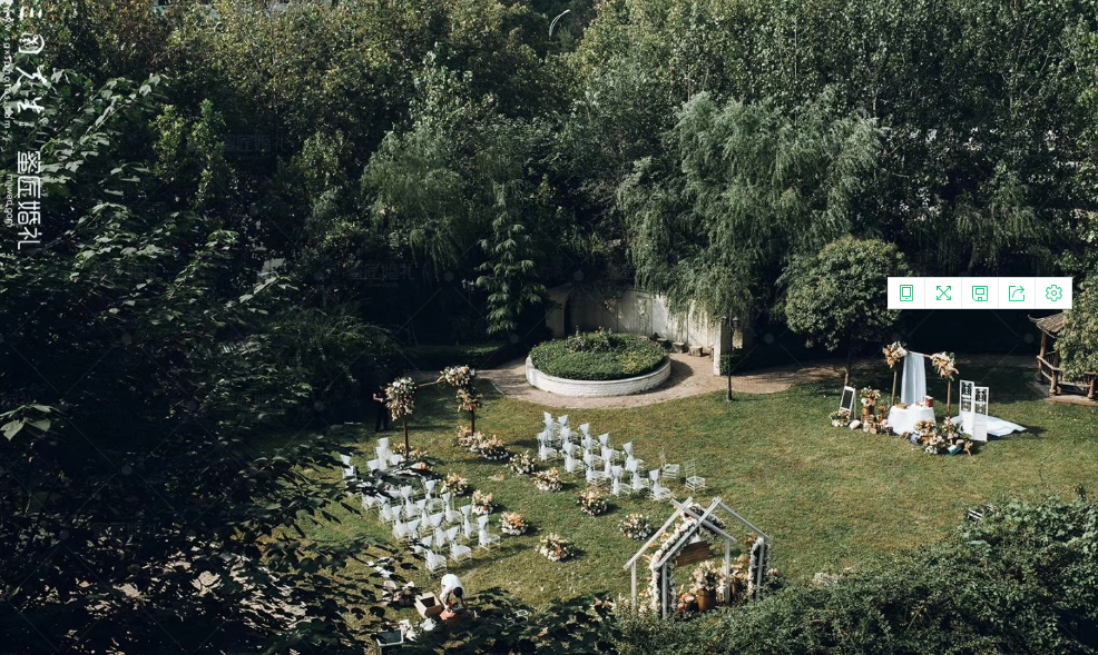 以白色、橙色、和绿色搭配布置,简约清新的感觉铺面而来,主舞台上用简单的木架搭建,再加以鲜花和绿叶点缀,满满的欧式简约风,也非常适合户外草坪婚礼的一款婚礼主题。