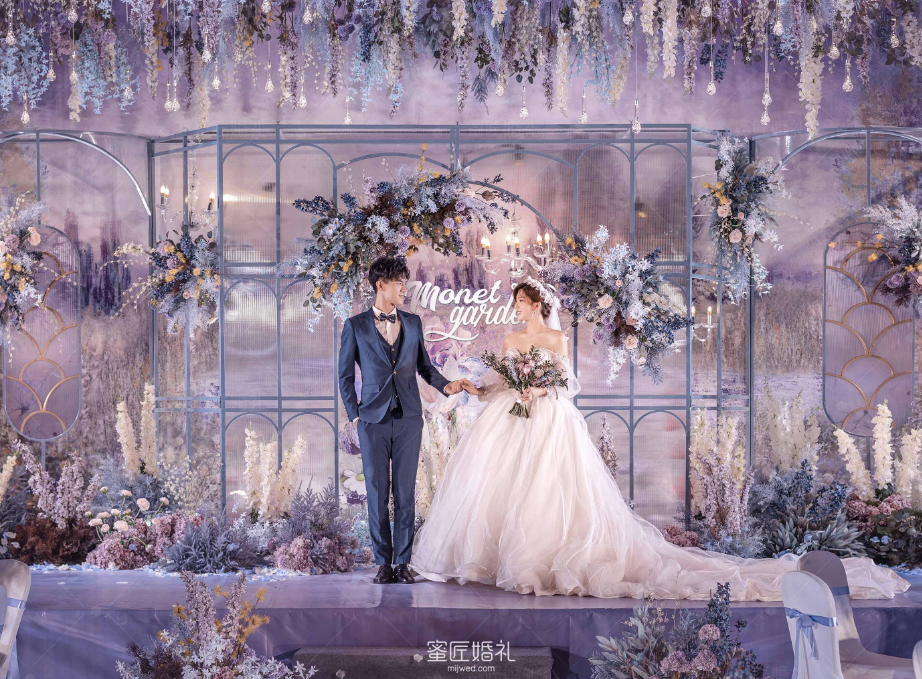 灵感源于油画般的莫奈花园,以花朵的绽放,雾霾蓝的油画质感打造,簇拥着花房的精美花艺点缀。在这幽静美好的方寸之地,浪漫正在生长和蔓延,直至永恒。