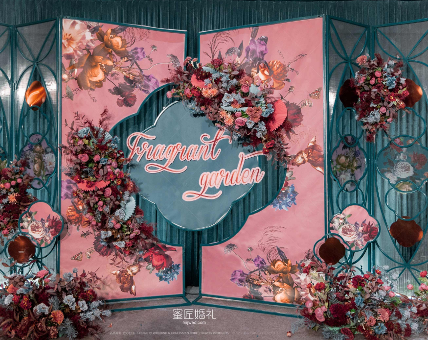 灵感源于18世纪后半叶,法国掀起的一股“中国热”浪潮。法式华贵糅合了中国风,中西文化元素的精彩碰撞,打造一座绚烂的复古花园,让浪漫婚礼增添了一份优雅气质。