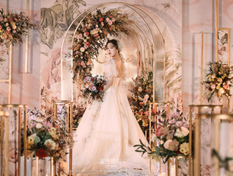独特的空间布局文艺浪漫,复古花艺温柔内敛,迷人金色色调油画般精致迷人。