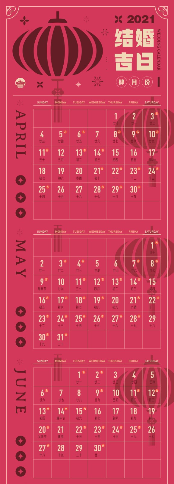 小蜜蜂给大家准备了一份“2021婚嫁吉日表”,叫上长辈一起来选好日子吧!