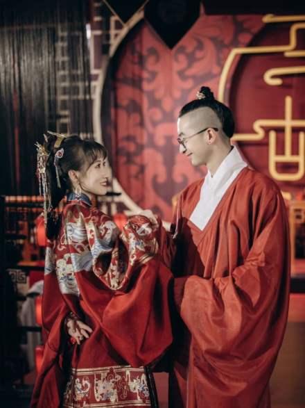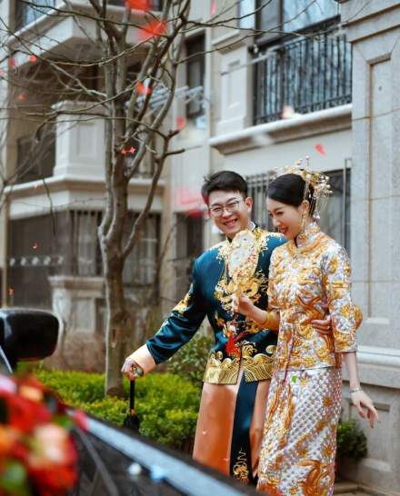 婚礼日记:中式婚礼礼服,踩雷+推荐 关于我的中式回门宴!我真的有太多话要说! 还是先来说服装造型! 首先,仪式的服装我还是拒绝秀禾! 为了搭配我们现场的颜色(黑色+红色),我的服装选择了上红下蓝。 🟥长袄: 🍑宴山亭,火琉璃---¥600左右 火琉璃的颜色是偏向暗红,而不是大红。相信我,这个颜色配合场布,比大红色看起来高级多了!而且领口还很心机的做了孔雀蓝(绿?)色的里衬,配合可以翻下来的设计,真的美炸了!!!!!对花也比较优秀。 推荐指数:⭐⭐⭐⭐⭐ 🟦下裙依然是空谷记呆呆龙 推荐指数⭐⭐⭐⭐ (我要求不高所以觉得还ok。性价比挺好哒) 鞋子扇子等可以去我另一篇笔记 我要吹的是我先生的衣服! 为了找一身他的衣服我真的煞费苦心! 因为: 他拒绝飞鱼服(倒是我也拒绝)…… 他不喜欢蟒袍…… 他还拒绝补子…… 他受不了玉带…… 我🤦🏻♀️🤦🏻♀️🤦🏻♀️🤷🏻♀️🤷🏻♀️🤷🏻♀️🤷🏻♀️ 最后给他选到了这套道袍! 🍑司南阁:无心---¥566 绣花很可爱,颜色柔和,而且因为绣花很少,戴眼镜或者头发短一点看起来也不会很违和。是一件大部分人穿都会好看的衣服! 推荐指数:⭐⭐⭐⭐⭐ 🌹晨袍:gukko 果壳就不多说了,质量就是好,绣花非常精致。 有打算未来也穿的姐妹真的可以买! 推荐指数⭐⭐⭐⭐ (就是太贵了,大部分人应该不会穿第二次) 回家的衣服选了常服而不是礼服。毕竟常服看起来比较有回家的感觉。 两件套来自: 🍑织羽集:柔桑----马甲¥210,连衣裙¥389 连衣裙的长度超过了小腿,颜色应该是是深绯,很柔和和暖的红色。袖口绣了金色竹叶,领口的蝴蝶结可拆卸,是一条单穿也很漂亮的裙子。马甲上的绣花是山石花鹿,可可爱爱。 推荐指数:🌟🌟🌟🌟🌟 最后要吐槽迎宾服! 亲爱的白我居然踩雷了!不可置信! 我应该是全网第一个吐槽亲爱的白! 礼服设计很漂亮,后背的珍珠帘是亮点,面料也漂亮。 但是!这条裙子的版型导致拍照死角极多! 正面基本不能看。如p9,在胸口有两条莫名其妙的线。亮点全部在背面,但是我迎宾合影也不能拍背啊!而且因为肩膀处的设计,上半身看起来会像是正方形。整个人看起来胖了20斤。 后背虽然设计的很有想法,但是版型真心一般。斜方肌会被无限放大,显得人膀大腰圆,肩厚背宽。 推荐指数:⭐⭐(两颗星给设计)2021年06月22日