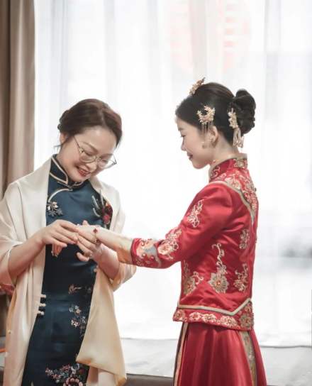 婚礼接亲秀禾造型 妈妈的旗袍我爱了!! 太喜欢我妈妈早上孔雀蓝的旗袍了 衬肤色而且显得气质很好 大家都在夸妈妈的旗袍好看 爱了爱了 本来对早晨的秀禾造型没有太大期待 结果是全天下来拍摄效果最好的 化妆师给做的中式造型好适合我嘻嘻2021年07月03日