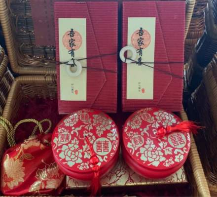 我的中式喜糖 距离订婚已经过去好久了,才想起来来分享下我们的喜糖 老家的习俗是,订完婚后就要分大糖和小糖,大糖一般是给有人情来往的亲朋好友分的,小糖就是分分热闹,给关系没那么亲的朋友啊邻居啊物业保安之类的。 我选择喜糖的要求是: 1 和别人的不一样,较起码和我收到过的喜糖不一样 2包装可以再利用(不希望自己的喜糖是被人家收到后就扔掉的) 所以较后选了中式的。事实证明我的选择没有错,身边每一位收到喜糖的朋友都说我的喜糖很特别很实用,品外包装是手工藤篮,经过编织刷油日晒,沉甸甸的很有分量, 日后可以拿来当收纳盒,商品里面还有两个小铁盒和小锦囊袋可以拿来收纳小物件,里面的糖和饼干也是我婆婆亲自试吃过选下的(婆婆对吃的要求很高,和我比起来更注重食物本身) 所以我老公他们家选择图4图5这样的大糖分给他们亲戚朋友,一袋里面两大盒,一盒进口巧克力,一盒进口威化饼,也是炒鸡大气的感觉,图6就是我选的小糖包装袋拉,同样是中式的小袋子,质量很好真的可以直接拎出门用啦! 希望小姐妹们选糖的时候多对比几家店,看看自己喜欢的风格,较后祝福你们可以选到自己喜欢的喜糖啦!2021年05月28日