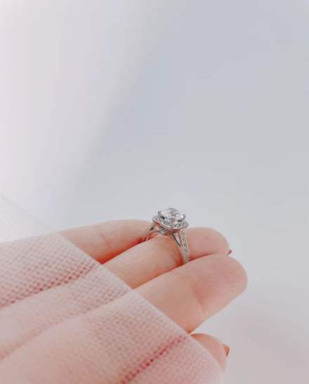 超显大的钻戒款式‼️朋友们都以为是2克拉🤭 分享一枚超显大的钻戒给朋友们‼️ 群镶款的【纬度】✨ 外方内圆得设计,方圆有度,有天有地的寓意(说真的,这寓意有点土哈哈哈哈哈) 1克拉的主钻纵使很大了,但是围镶的设计,能让枚钻戒显得更奢华,更有细节!💗 戒托最下面还镶嵌了小钻,托高的设计让这枚钻戒看起来非常优雅 主钻选的F色 SI净度 3EX得切工 性价比很高👌 超有仪式感💗2021年06月01日